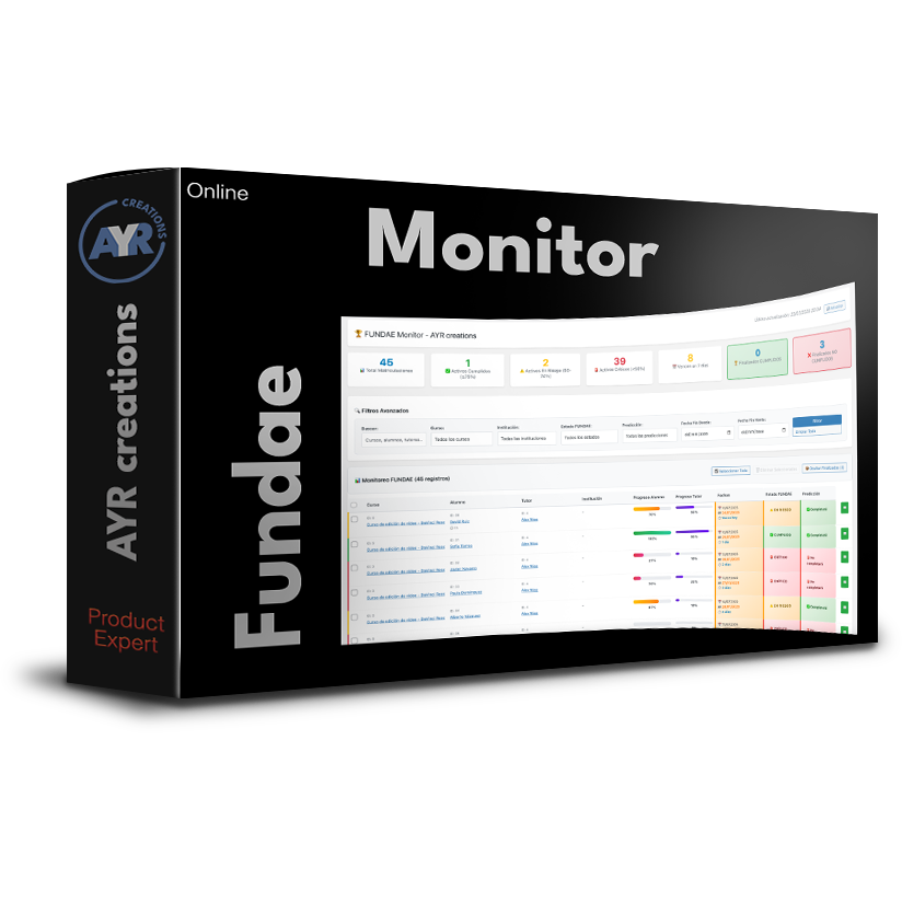 Esta herramienta centraliza toda la información crítica de tus cursos en un dashboard intuitivo, permitiendo visualizar el progreso de cada alumno, la actividad tutorial, días restantes hasta finalización y el estado de cumplimiento del 75% requerido para la bonificación.